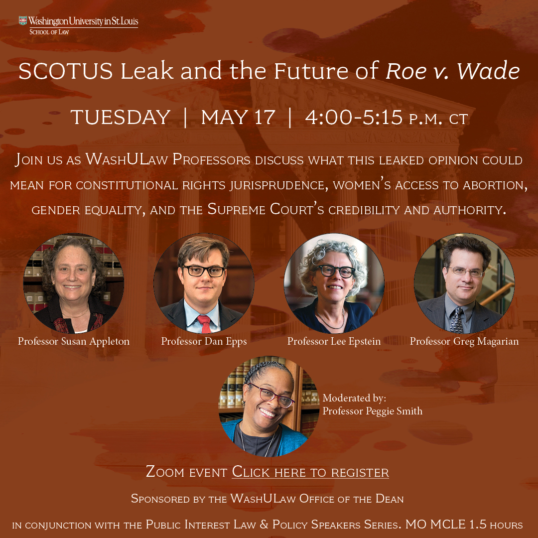 Our faculty gather to discuss the recent, unprecedented leak of a draft of a Supreme Court majority opinion overturning Roe v. Wade. Register here to attend and listen in as our professors offer their insights.