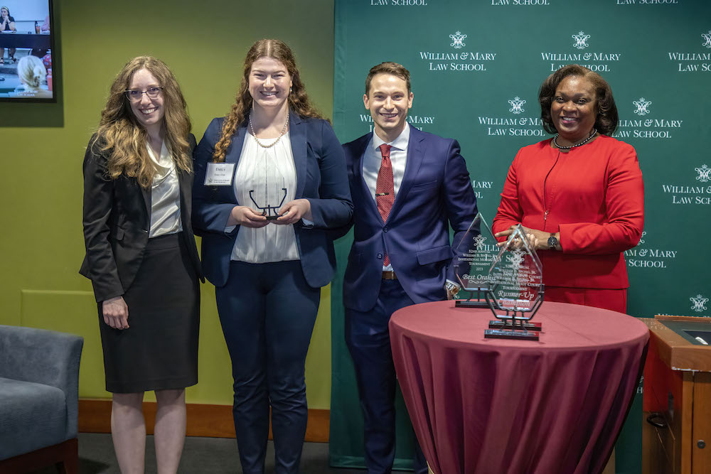 Congratulations to 2L students Emily Fox, Hannah Greggs, and Matt Nussbaum on their second-place finish in the William B. Spong Invitational Moot Court Competition! They argued in front of an impressive panel of judges that included Cleo E. Powell, Justice, Supreme Court of Virginia; Eugene E. Siler, Jr., Senior Judge, United States Court of Appeals for the Sixth Circuit; Henry E. Hudson, Senior District Judge, and more. It is the National Moot Court Team’s strongest showing in the competition since 2020, when it won its second Spong Tournament championship.